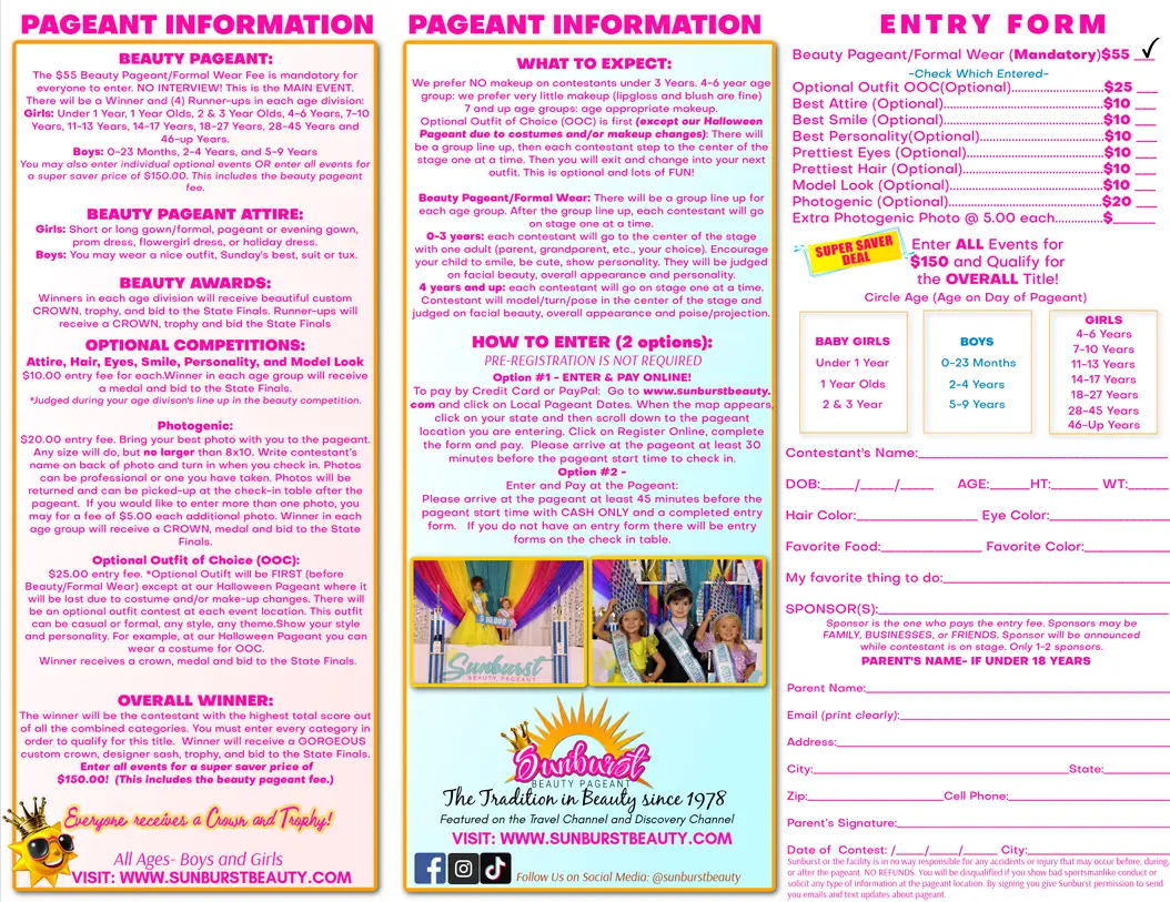 To register: Online Registration | Sunburst Beauty Pageant
